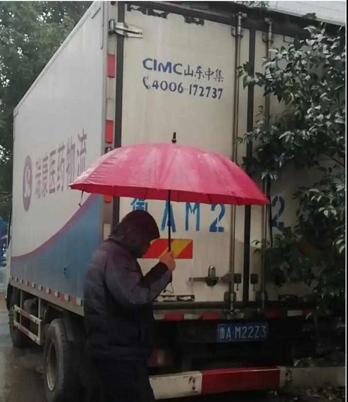 司機不畏風雨在送貨