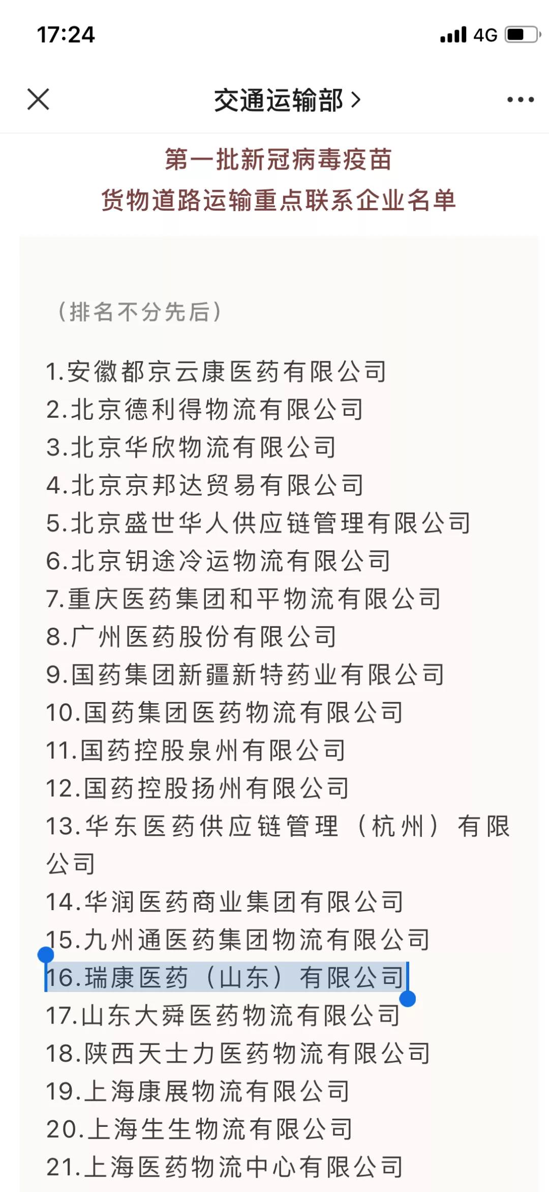 瑞康醫藥(山東)亚洲国产91-91福利区-91精品网站-91在线一区入選交通部 “第一批新冠疫苗運輸企業公示”名單